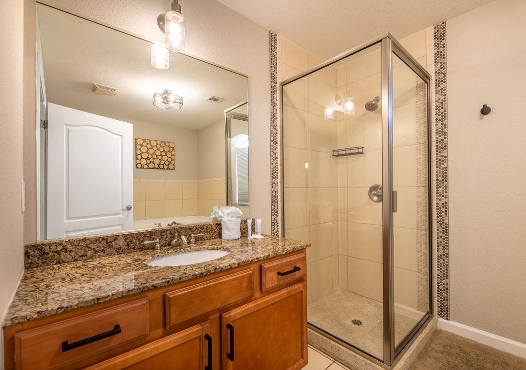 ✔ Bedroom #3: Inviting Bedroom with a Queen Bed and Flat-screen TV; Access to a Full Bathroom with Stand Up Shower