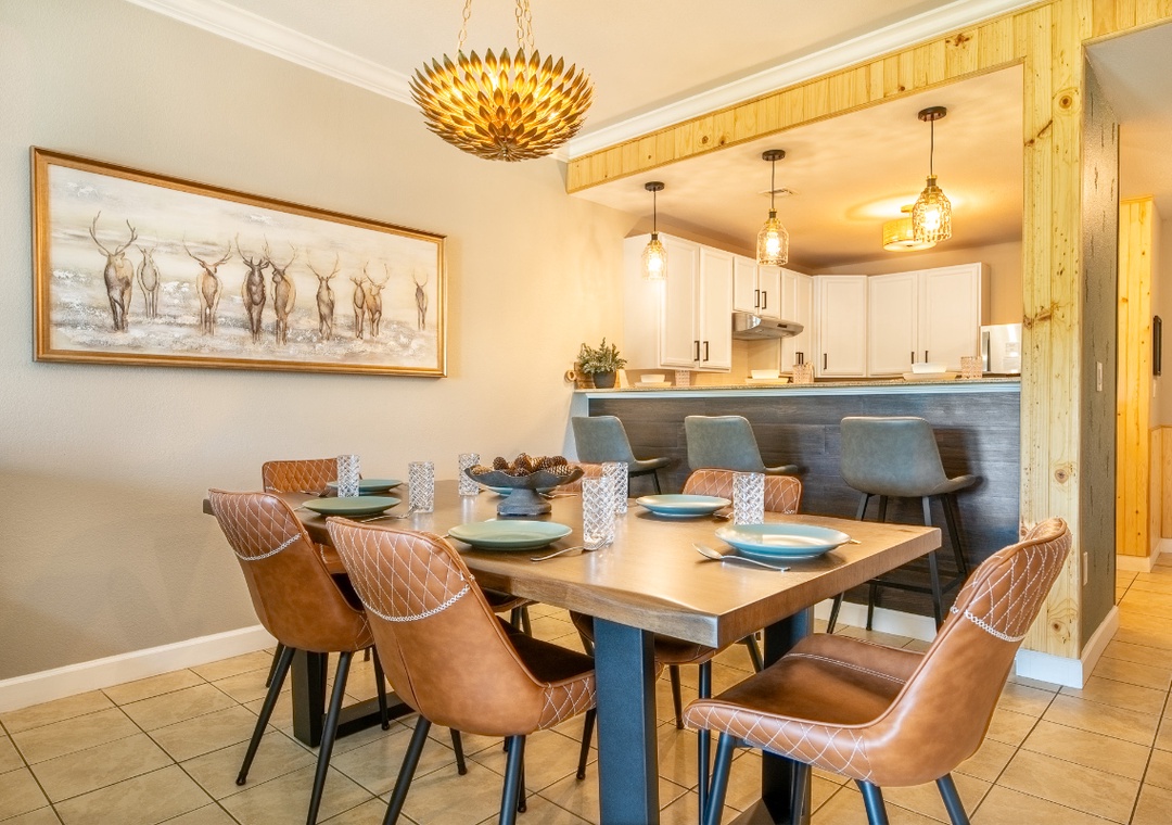 The fully-equipped kitchen boasts modern amenities, making it easy to prepare delicious meals for your family or friends. Well-appointed with a refrigerator, stove, dishwasher, microwave, and other kitchen appliances, perfect for making breakfast, lunch, or dinner throughout your stay! All pots, pans, glasses, plates, silverware, etc., are also there for you! Gather around the inviting dining table to savor your meal while enjoying the fresh mountain air.