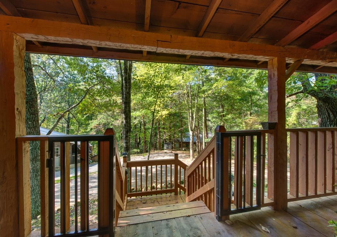 My only humble suggestion, put an exterior light out by the first set of stairs. At night time, it's really dark and can't see those stairs good. Just for safety, maybe put a light right there to see the steps.