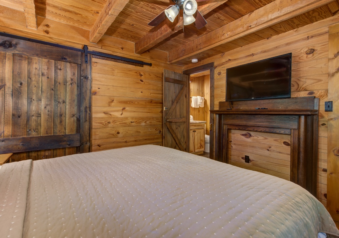 ✔ Bedroom #1 (Main Level): Spacious Bedroom with a King-sized Bed and a Flat-screen TV; Access to a Full Bathroom with Shower/Tub Combo