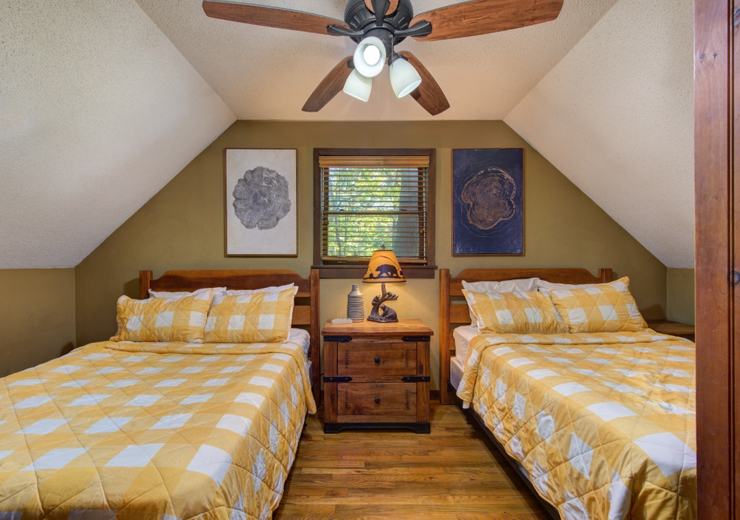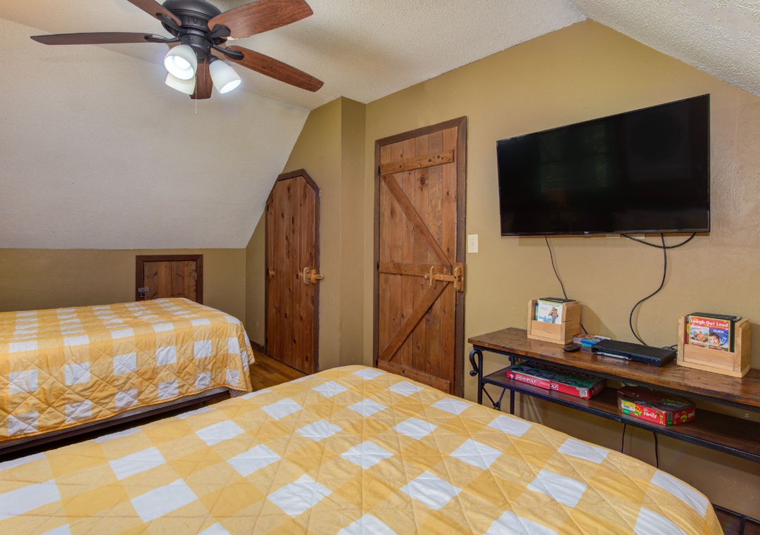 ✔ Bedroom #4 (Upper Level): Relaxing Bedroom with 2 Queen-sized Beds and a Flat-screen TV; Access to a Full Bathroom with Stand Up Shower