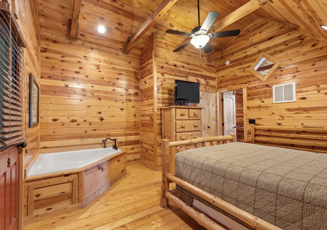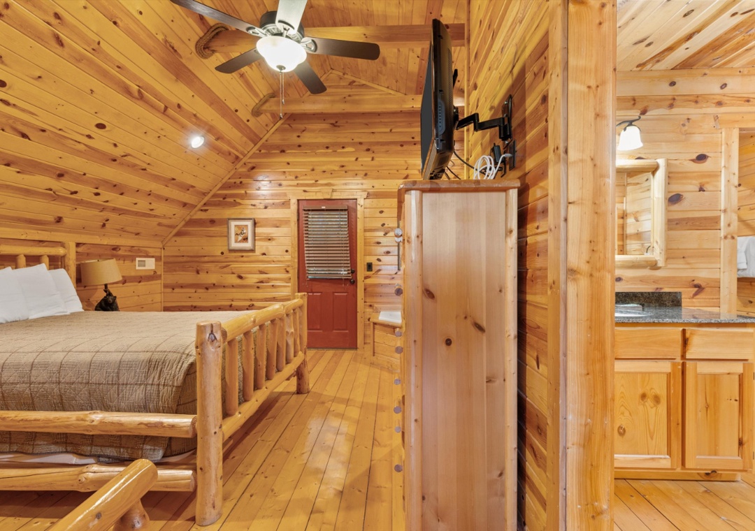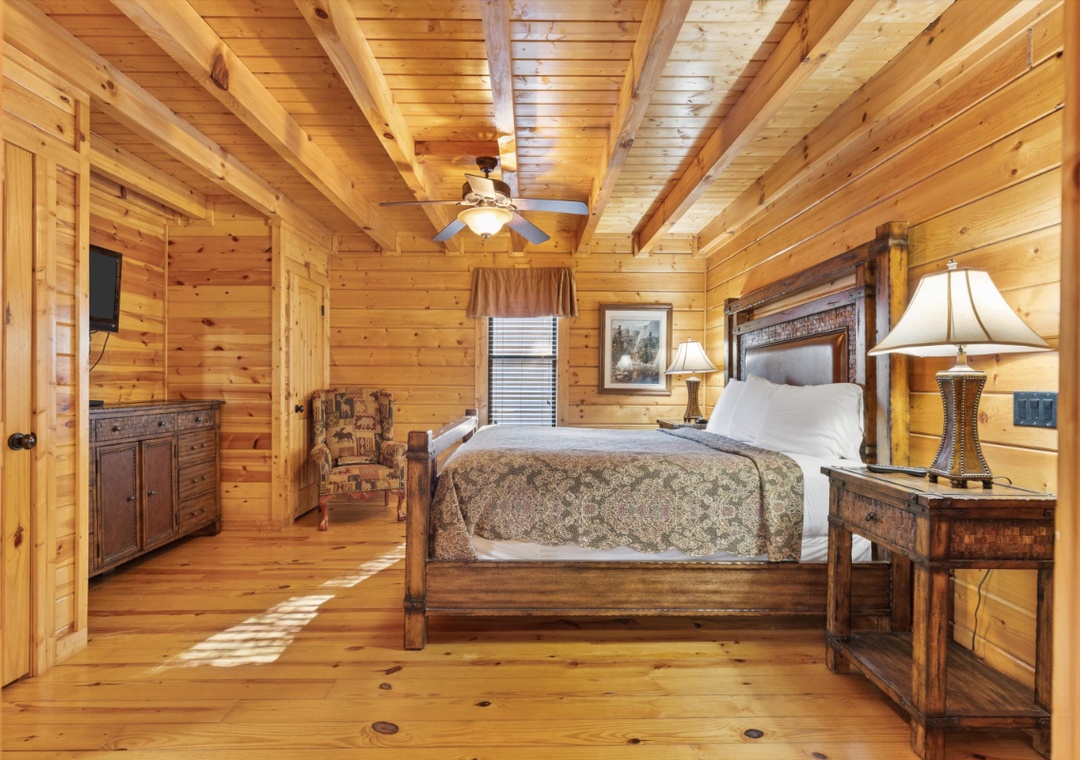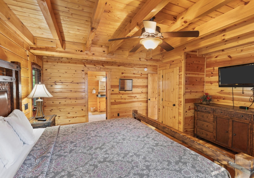 ✔ Bedroom #1 (Main Level): Spacious Bedroom with a King-sized Bed and a Flat-screen TV; Attached Full Bathroom with a Stand Up Shower