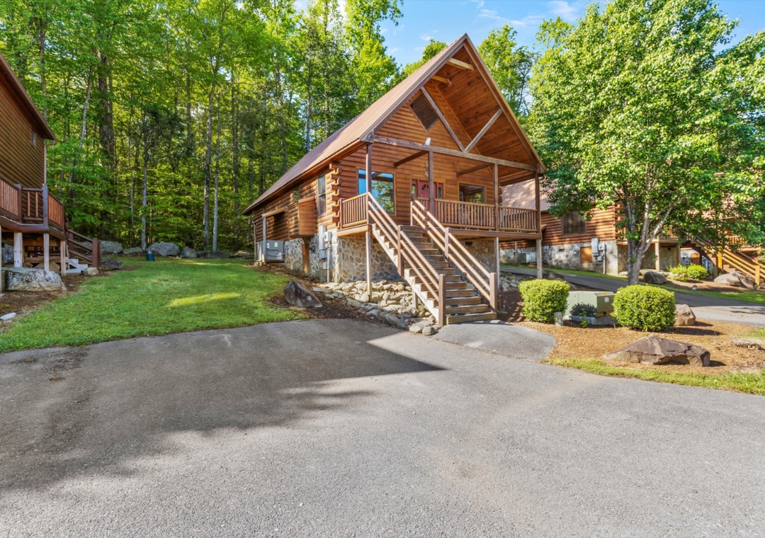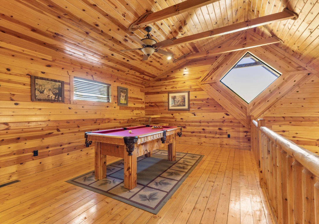 Begin in the warm living area, where entertainment begins. The space features a comfortable seating area centered around a 50" Roku TV and a cozy propane fireplace ideal for movie nights, streaming your favorite shows, or enjoying a quiet evening in after a day of adventure. Upstairs in the loft, the fun continues with a full-size pool table, perfect for friendly competition or a casual game. For those who prefer to take the fun outside, the back deck offers a bubbling hot tub overlooking the tranquil woods. It’s the ultimate way to unwind after a day filled with activities. Throughout the resort, you’ll also have access to propane BBQ grills perfect for grilling up a family feast or casual burgers after a swim or hike. Speaking of swimming, just a short walk from the cabin is the resort’s seasonal community pool, located at the clubhouse near the entrance. It’s a great spot to cool off on sunny afternoons or simply lounge by the pool with a good book. If you're in the mood to explore beyond the cabin, “White Oak 212” is just a quick drive to the entertainment-packed streets of downtown Gatlinburg, where you’ll find an endless list of attractions.