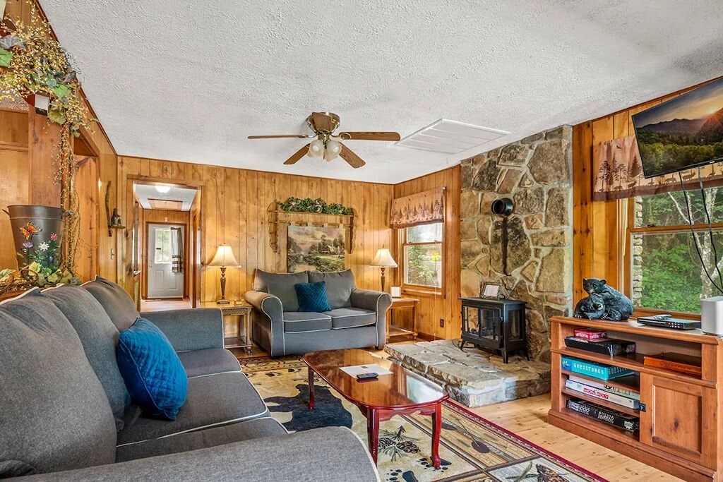 Love this cabin! It was perfect for us. Very close to Rocky Top Sports Complex where our daughter played in a basketball tournament. Kitchen was well-equipped, beds were comfortable, living area was open and fostered togetherness, private, felt safe. Walking distance to some interesting-looking shops. Great back yard and fire pit. Wish the weather had allowed us to enjoy it….