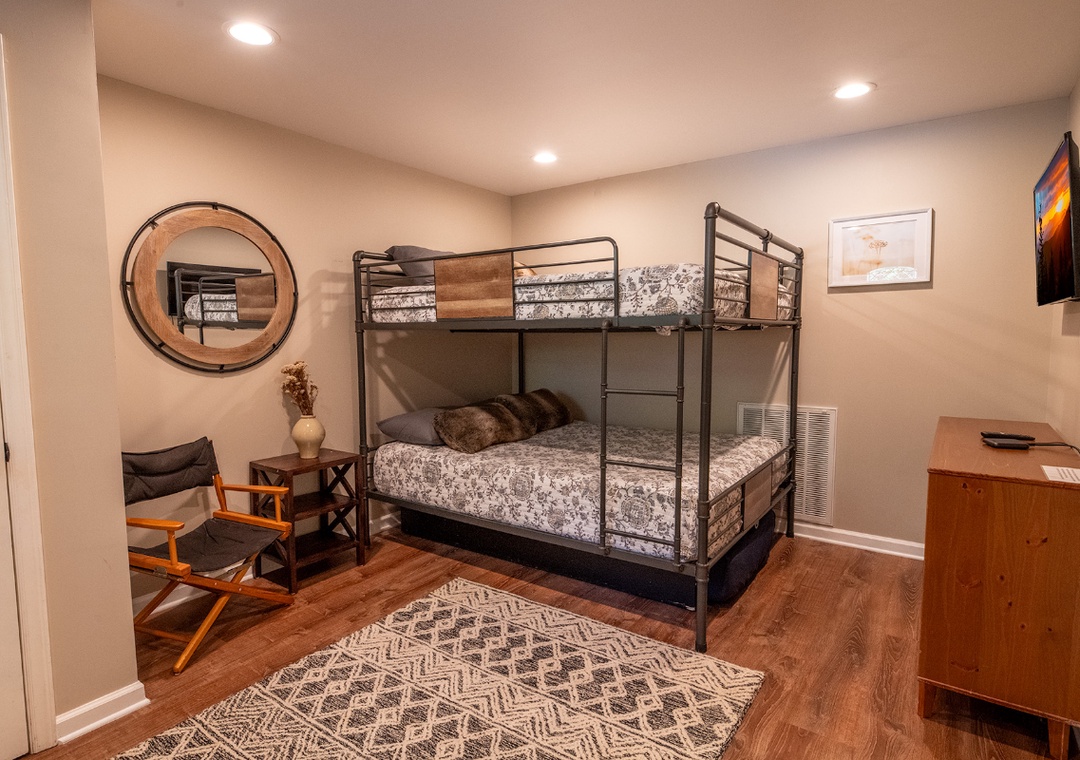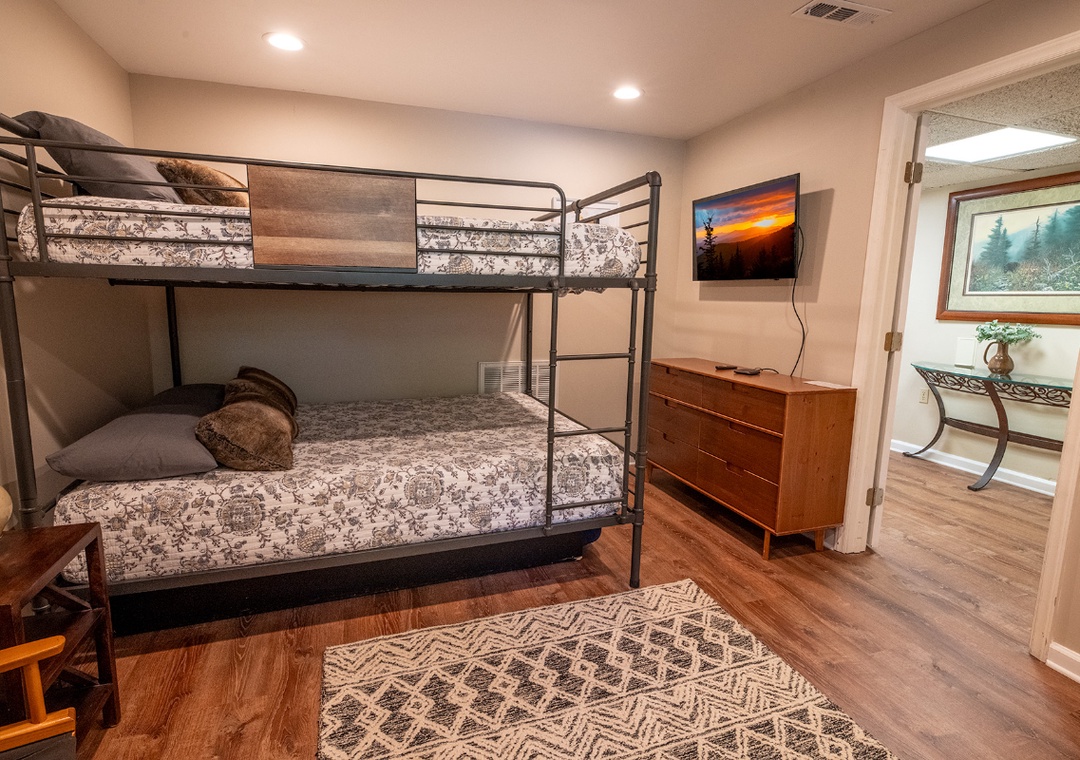 ✔ Bedroom #4 (Lower Level): Inviting Bedroom with a Queen-over-Queen Bunk, a Twin Trundle, a Flat-screen TV, and Access to a Full Bathroom with Stand Up Shower