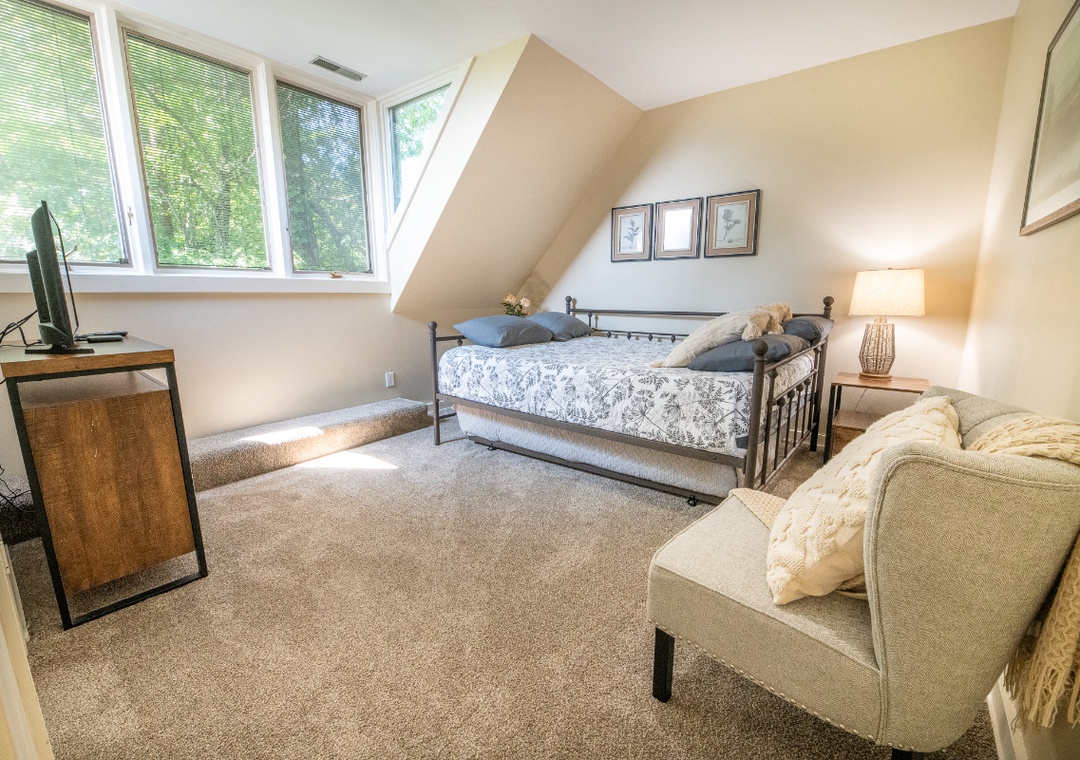 ✔ Bedroom #1 (Upper Level): Comfortable Bedroom with a Queen Daybed with Queen Trundle, Flat-screen TV, and Access to Full Bathroom with Stand Up Shower