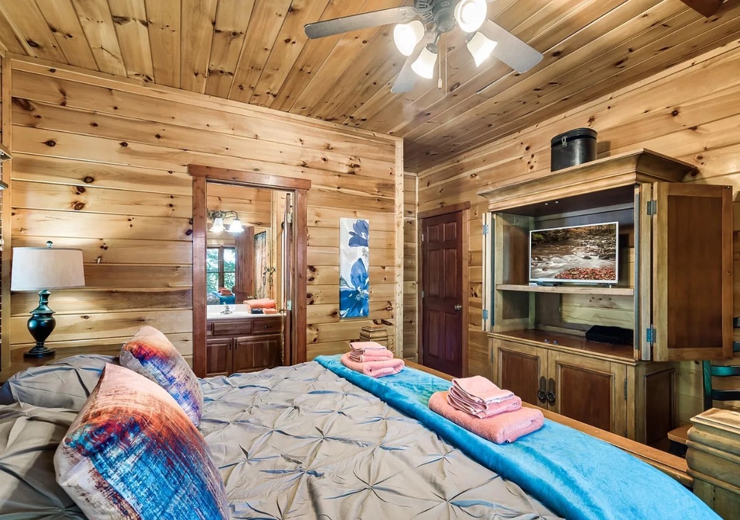 ✔ Bedroom #3 (Upper Level): Relaxing Bedroom with a King Bed and Flat-screen TV, Attached Full Bathroom with Stand-Up Shower and Separate Jacuzzi