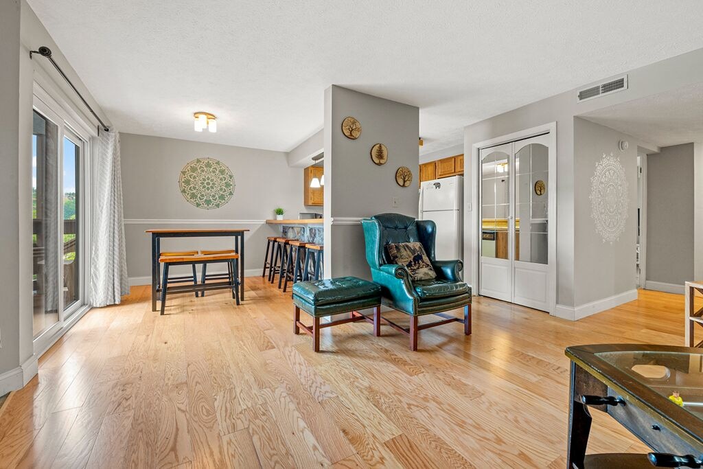 Fully equipped kitchen with full-sized refrigerator, dishwasher, stove, microwave, and other kitchen appliances perfect for making breakfast, lunch, or dinner throughout your stay! All pots, pans, glasses, plates, silverware, etc. are also there for you! There is a gorgeous wooden dining room table right off the kitchen with seating for four along with additional breakfast bar seating for additional guests.