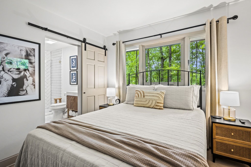 When you're ready to explore the great outdoors, step outside onto the front porch. Adorned with comfortable outdoor seating, it is the perfect spot to sip your morning coffee or an evening glass of wine. As the sun begins to set, gather around the inviting fire pit, where cozy seating encircles the flickering flames. Share stories, laughter, and marshmallow-toasting moments, creating memories that will be cherished for years.
