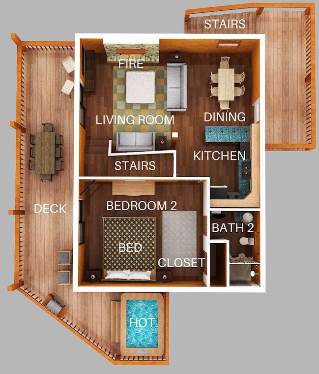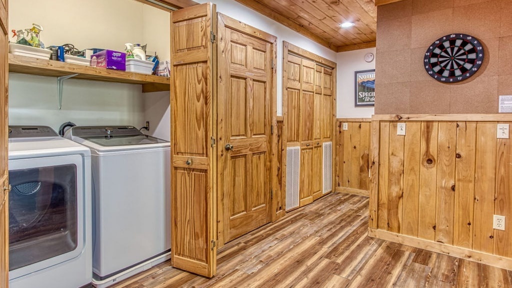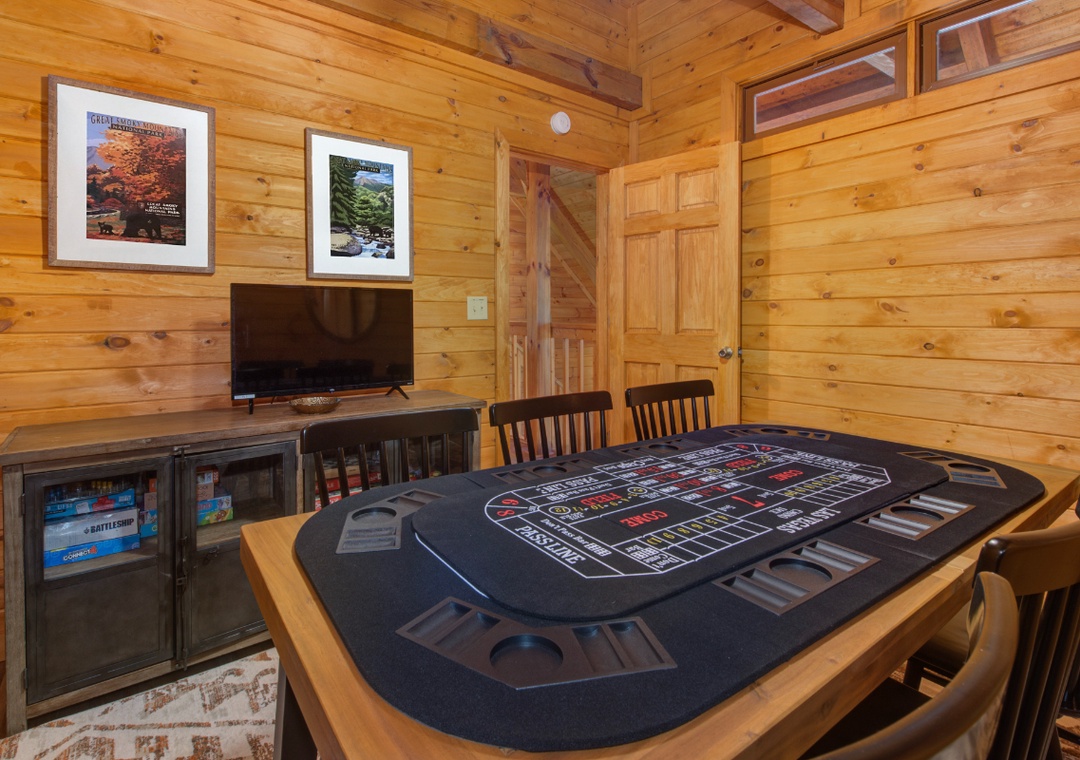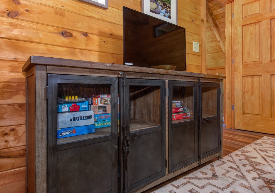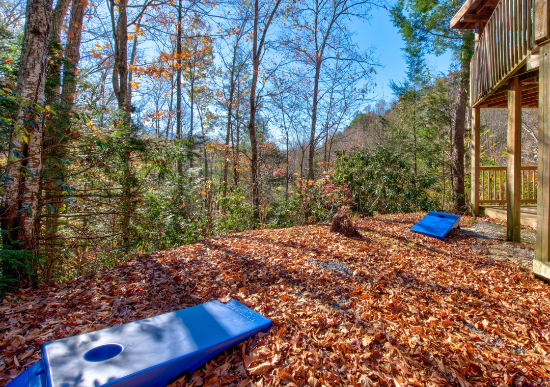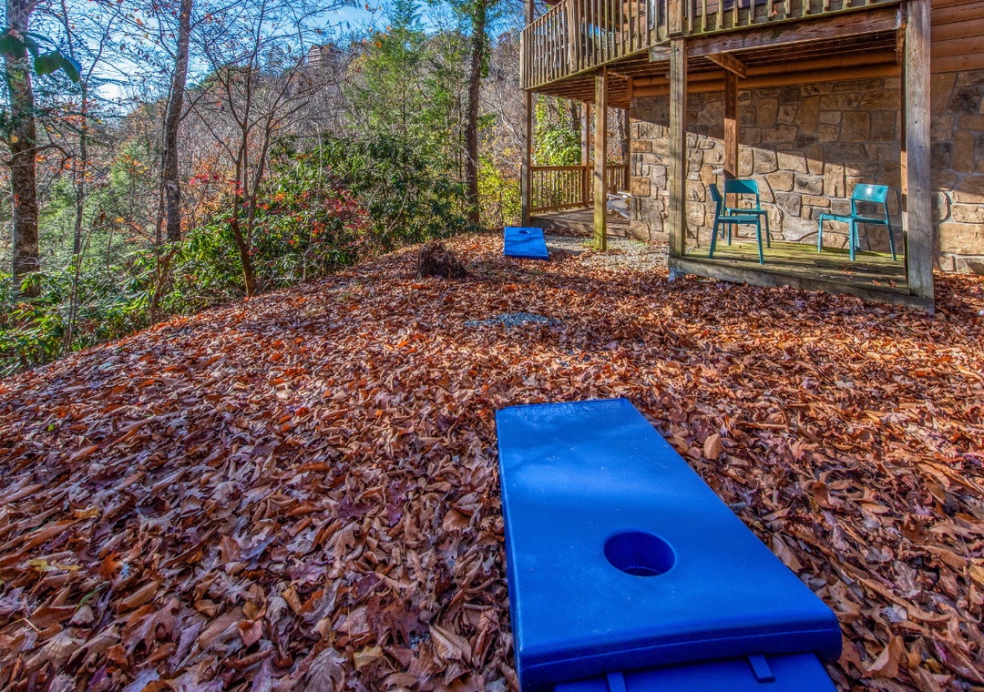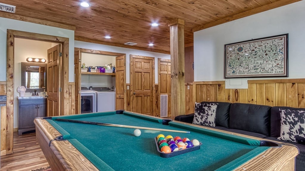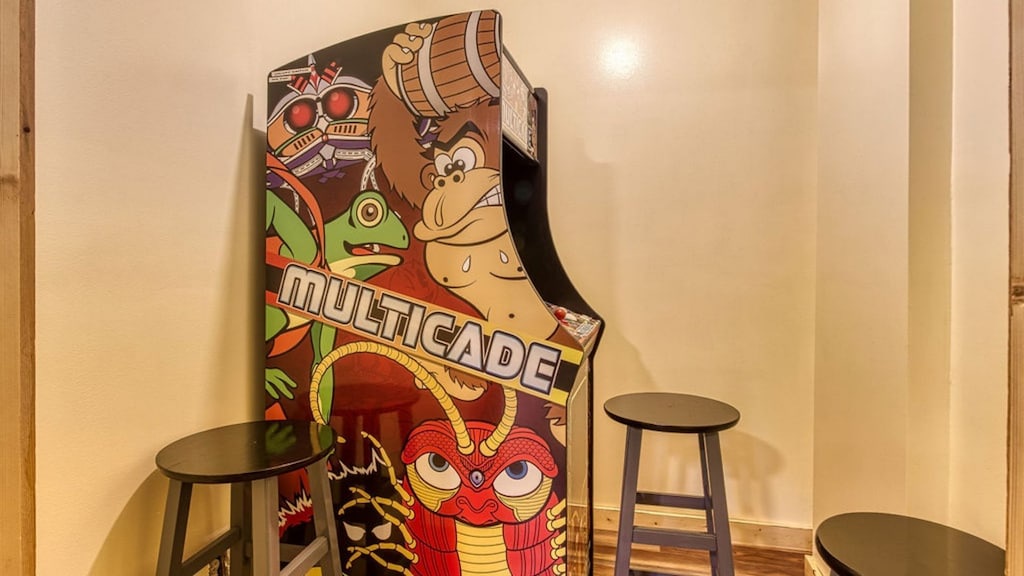 The lower level is where you will find the pool table and arcade game for endless hours of fun for adults and kids alike. If that begins to get boring (which is unlikely), more fun awaits you outdoors! You and your guests can relax in the hot tub, play a game of corn hole, or grill dinner on the gas grill and dine at the outdoor table while taking in the gorgeous view. To wind down your day, enjoy a hot cup of tea (or moonshine!) while relaxing on the porch lounge chairs. During the summer months (from Memorial Day to Labor Day), guests can enjoy access to three nearby community pools, perfect for cooling off and relaxing under the Smoky Mountain sun: