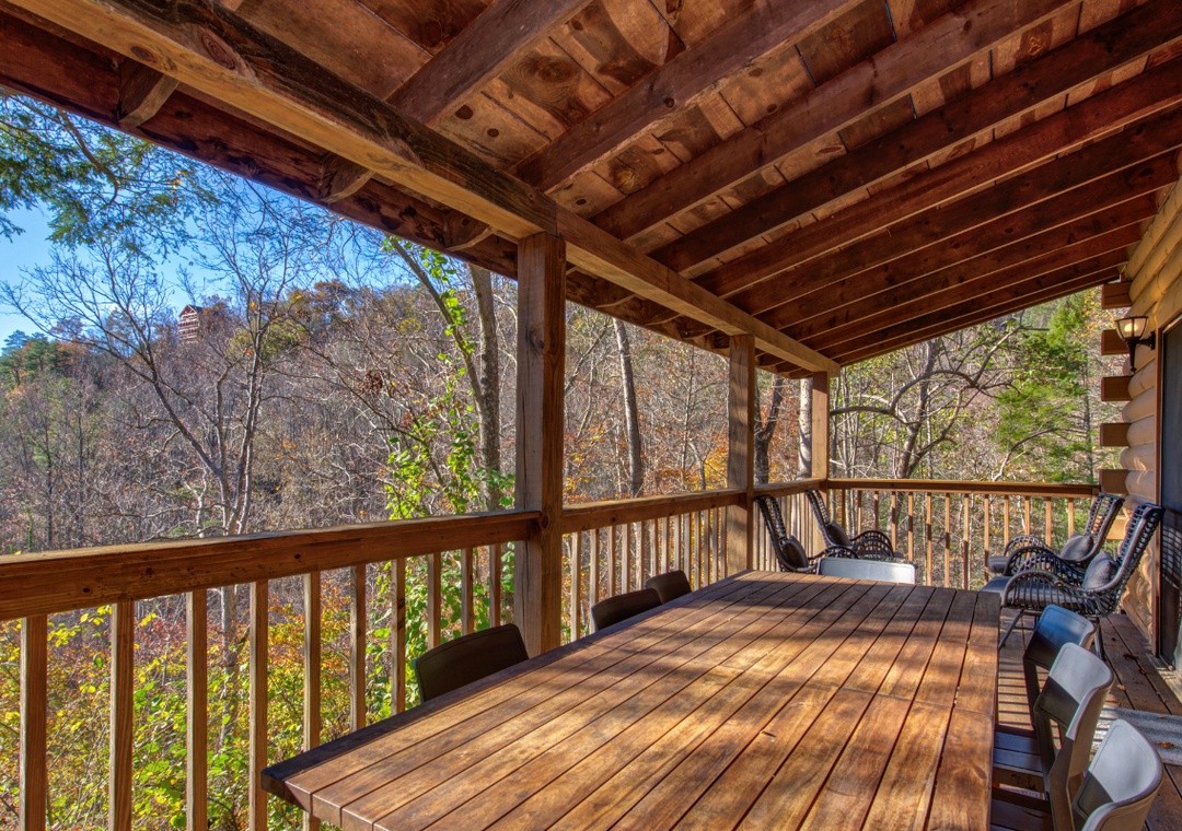 The vacation vibe you get from staying in this home begins even before you walk through the front door. You and your guests are greeted by a spacious home that is designed for your family to maximize fun in the Smoky Mountains! With spacious bedrooms, a steamy hot tub, an arcade game, and a pool table, your family and guests will have never-ending entertainment! In addition, the cabin has a huge deck that sprawls across the cabin, perfect for taking in the scenic view while cooking up dinner on the gas grill or enjoying a beverage on the deck!